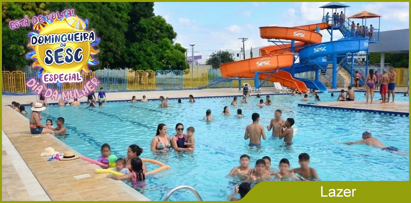 A unidade oferta o dia de lazer das 9h às 17h. Para o lazer, a unidade conta com atividades nas piscinas, jogos recreativos, campos de futebol. Além, do tradicional almoço e muita recreação.
