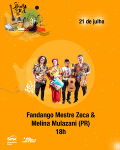 Dia 21 de Julho às 18h Fandangos Mestre Zeca e Melina Mulazani do Paraná.